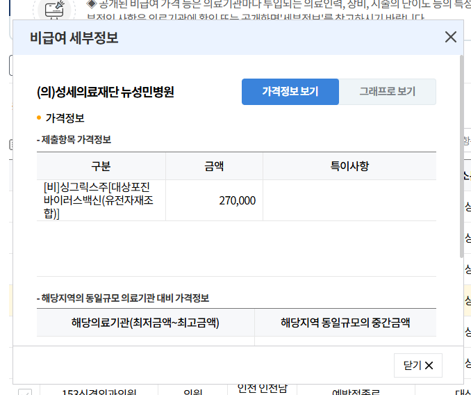 지역과 의료기관 규모, 의료기관을 선택한 다음 비급여 진료비 항목에 '대상포진'이라고 쓰고 검색해 줍니다.