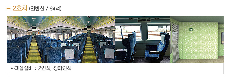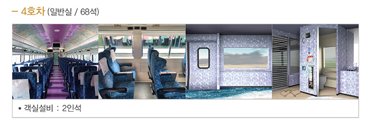 일반실 : 1,2,4호차는 일반 객실로 일반 열차 객실 같은 느낌이며 목적지까지 가는 것이 목적이라면 일반실을 사용하면 됩니다.