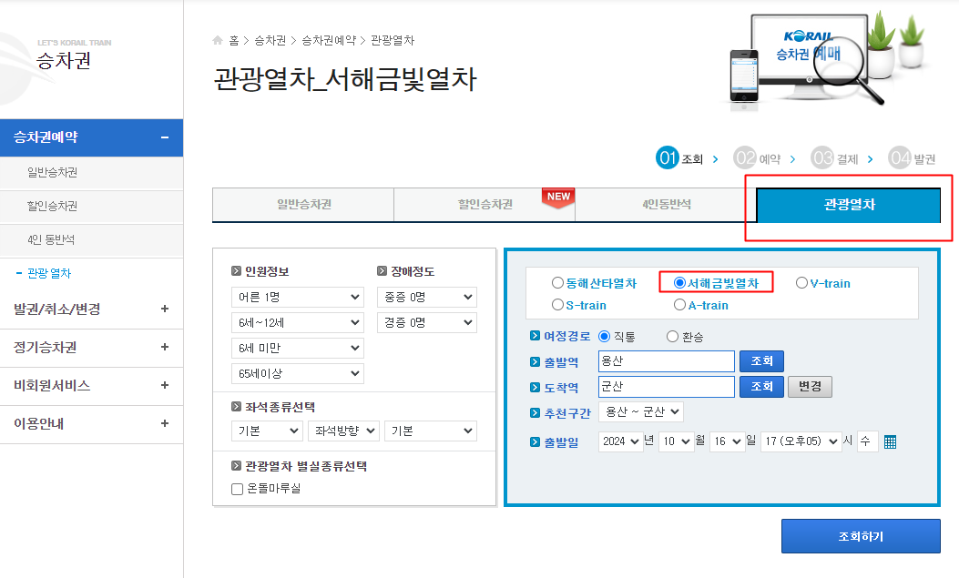 서해금빛열차 예약하기