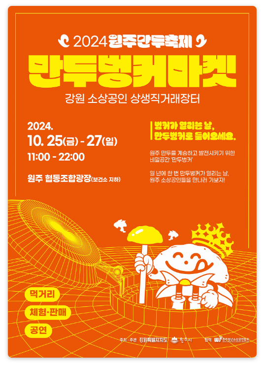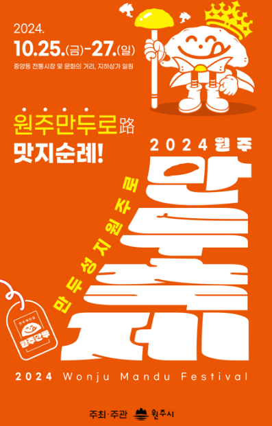 2024 원주 만두축제는 10월 25일 금요일부터 10월 27일 일요일까지 강원특별자치도 원주시 중앙동 전통시장 및 문화의 거리 일대에서 열립니다. 각 테마 부스에서는 한국 전통 만두뿐만 아니라 세계 각국의 독특한 만두도 한자리에서 즐길 수 있으니, 만두 애호가라면 절대 놓칠 수 없는 기회입니다. 올해 축제는 규모도 큰 만큼 일정을 꼭 확인하시고 재밌게 즐겨보세요.