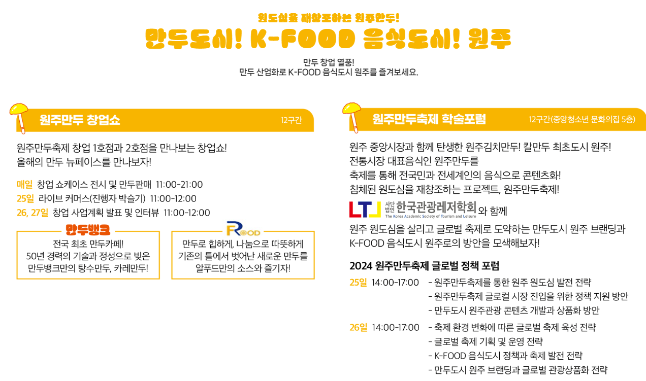 원두 만두축제에서 창업에 관한 쇼와 학술포럼도 진행되니 만두 창업에 관심 있는 분들은 놓치지 마세요.