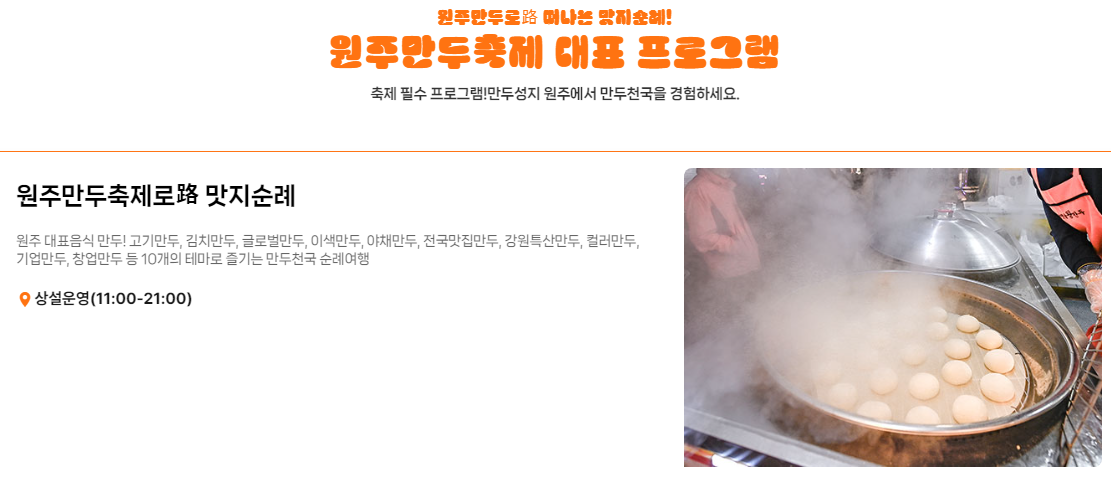 원주 만두축제 대표 프로그램을 소개하겠습니다.