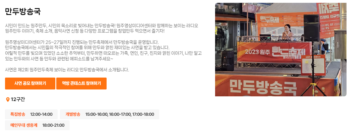 원주 만두축제는 다양한 맛의 만두는 물론, 가족 단위로 함께 즐길 수 있는 체험 프로그램과 공연도 많으니 일정 확인해서 개막식과 라디오 공개방송, 폐막식 축하공연까지 놓치지 마세요.