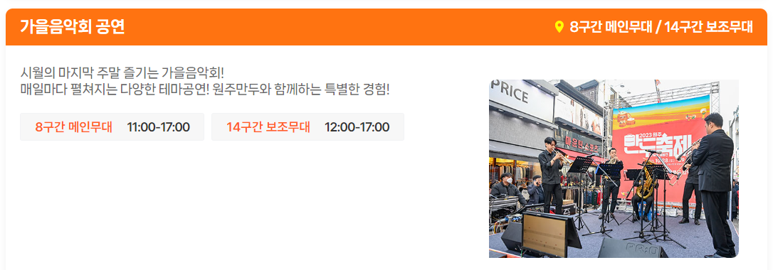 다양한 테마 공연도 원주 만두와 함께 즐겨보세요.
