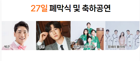 ▶ 폐막식 및 축하공연 일시 : 2024. 10. 27.(일) 19:00 ~ 21:00