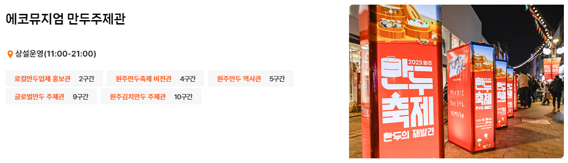 로컬만두업체 홍보관 / 원두만두 축제 비전관 / 원주만두 역사관 / 글로벌만두 주제관 / 원주김치만두 주제관