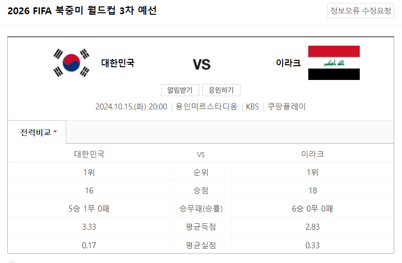 10월 15일 한국 vs 이라크 전