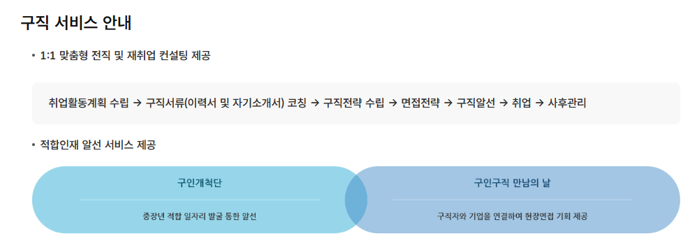 - 중장년 인력풀 운영 및 매칭서비스 제공
