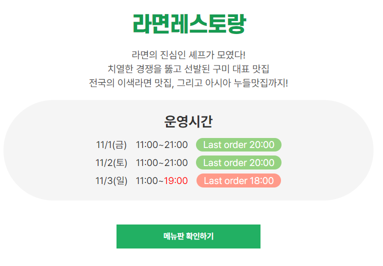- 시간: 오전 11:00 ~ 오후 6:30
