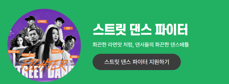 화끈한 라면맛 처럼 댄스들의 핫한 댄스 배틀을 볼 수 있습니다. 직접 스트릿 댄스 파이터로 참여하고 싶다면 아래에서 미리 신청하세요.