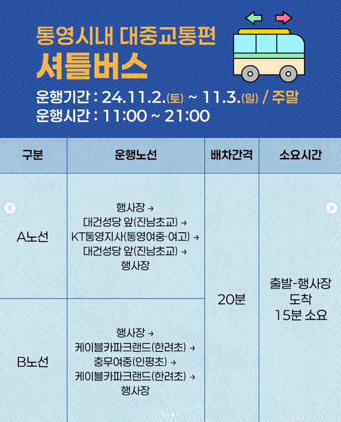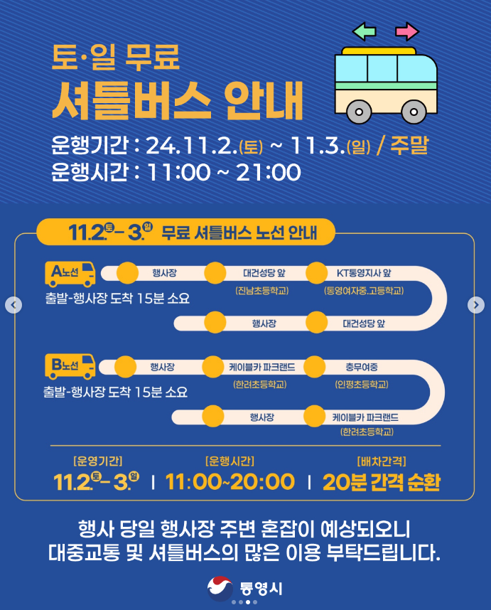 - 운행 기간: 2024년 11월 2일(토) ~ 11월 3일(일) / 11:00 ~ 21:00