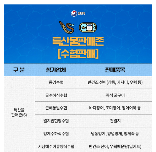 | 수산물 요리 체험 | 통영의 해산물을 활용한 요리를 직접 맛볼 수 있는 기회 |