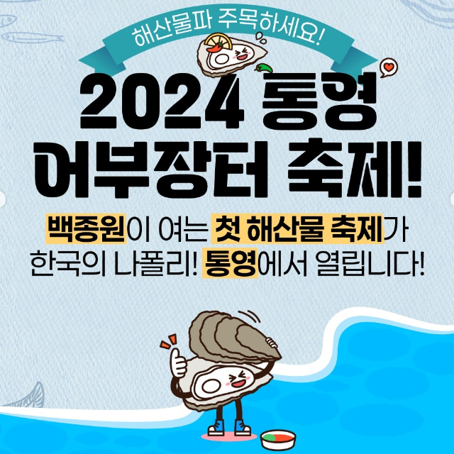 이번 축제는 특히 통영의 주요 명소와 맛집이 가까이 위치해 있어, 축제와 함께 통영의 다채로운 매력을 즐길 수 있습니다. 가족, 친구, 연인과 함께하는 여행에 딱 맞는 2024 통영 어부장터 축제를 통해 잊지 못할 가을의 추억을 만들어 보세요.
