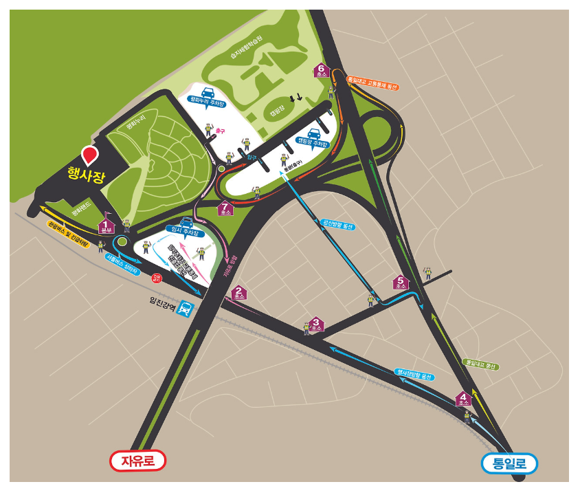 - 문산역(1번출구 앞)에서 행사장까지 무료 셔틀버스 상시 운행 - 운행시간: 09:00 ~ 17:00 (수시 운행)