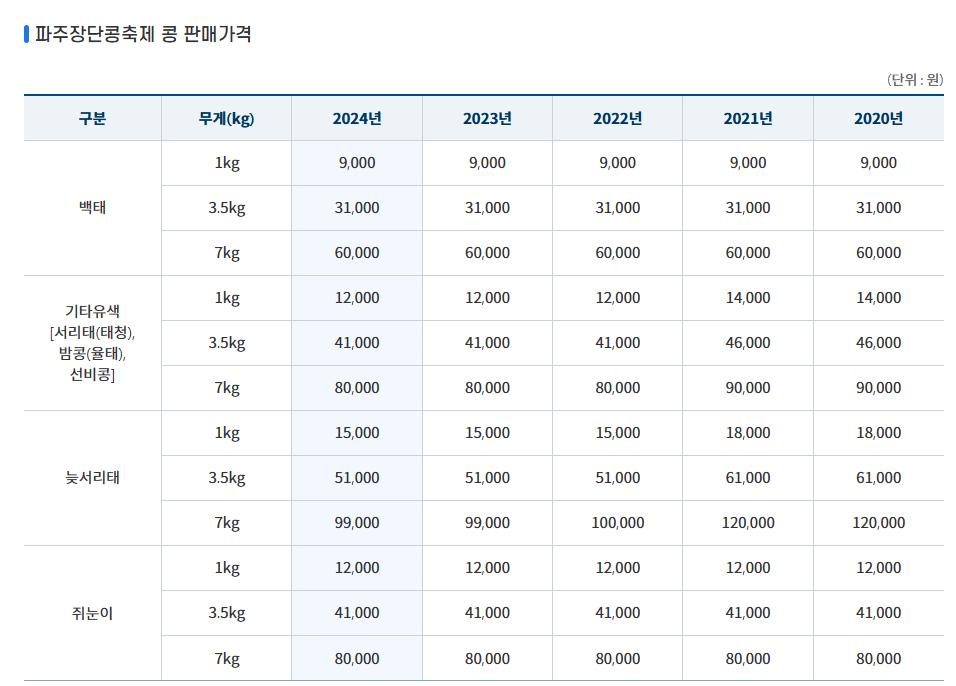 파주장단콩축제 판매 가격